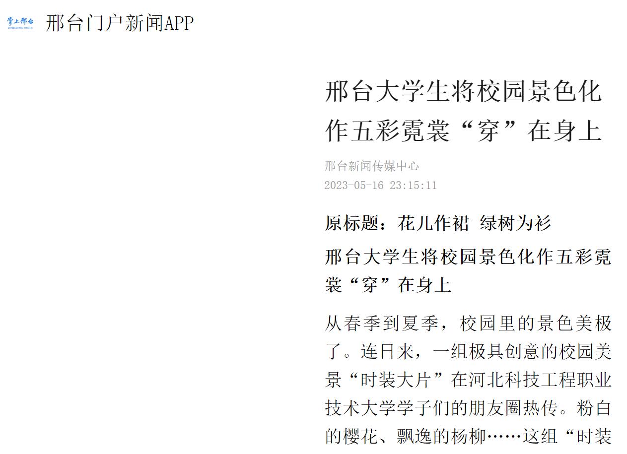 原标题:花儿作裙 绿树为衫 邢台大学生将校园景色化作五彩霓裳“穿”在身上