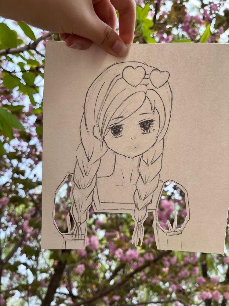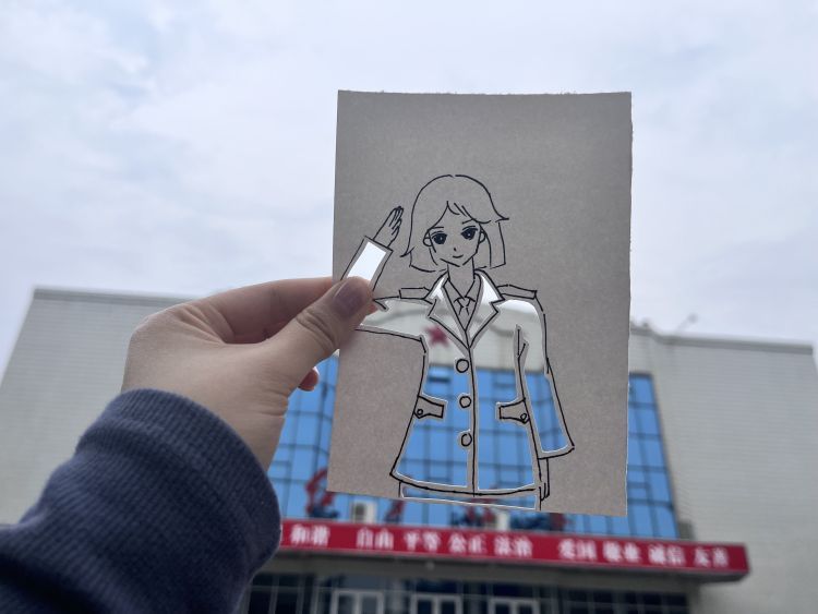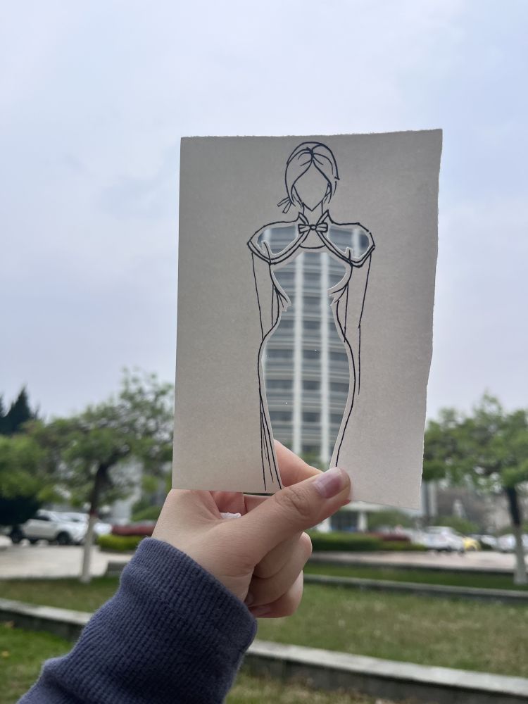 参与绘画和拍照的还有三位女大学生。贾妞是来自服装工程系的一名大学生,专业上占据优势的她,通过在纸上绘画和镂空的裁剪,设计出了青春洋溢的篮球少年、温柔典雅的旗袍美人、笑盈盈的双马尾少女……