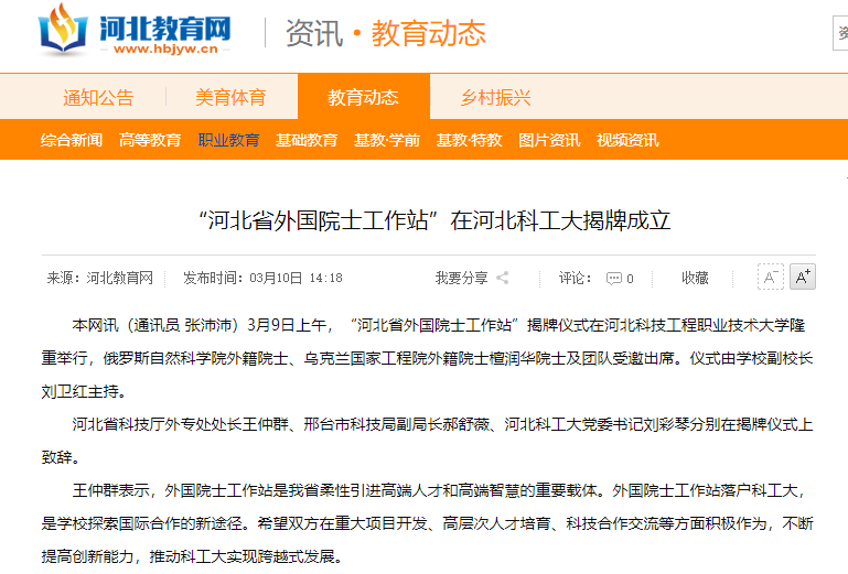 “河北省外国院士工作站”落户河北科工大,标志着邢台市在推动产学研合作方面迈上了一个新台阶,在推动科技创新方面取得了新成效,必将对区域经济转型发展产生积极的推动作用和示范效应。相信在省科技厅和市科技局的正确领导下,在檀润华院士团队的大力支持下,河北科工大一定能够在科技创新和服务企业创新发展的道路上,迈出更加坚实的步伐。
