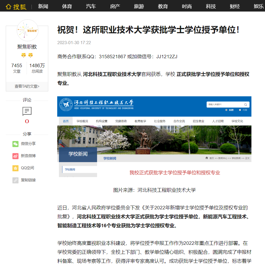 近日,河北省人民政府学位委员会下发《关于2022年新增学士学位授予单位及授权专业的批复》,best365中国官方网站正式获批为学士学位授予单位,新能源汽车工程技术、智能制造工程技术等16个专业获批为学士学位授权专业。