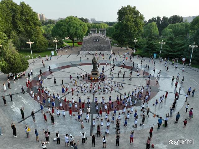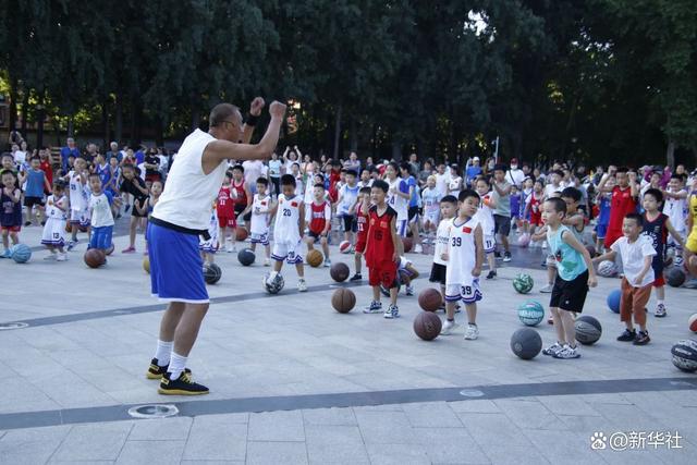 8月27日,篮球训练营学员们进行热身准备(无人机照片)。陈雷 摄