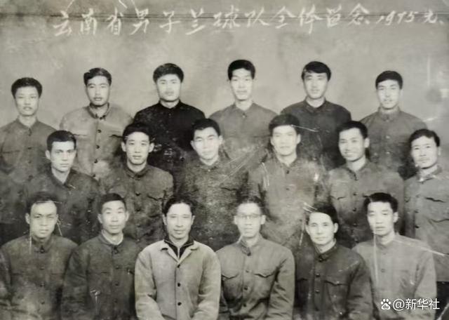1975年,张正(第三排右二)随云南省男子篮球队参赛合影。受访人供图