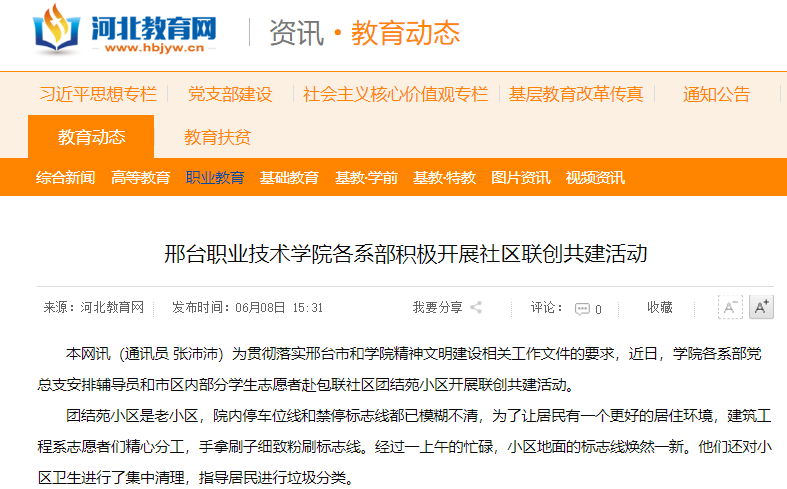通过联创共建活动,包联社区的环境得到改善,彰显了师生团结奉献的志愿者精神,展现了邢台职业技术学院文明单位的形象,进一步助力全市文明城市的创建工作。(来源 河北教育网)