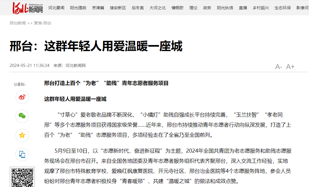 邢台打造上百个“为老”“助残”青年志愿者服务项目