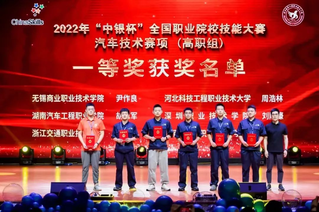本次大赛共有6名选手获得一等奖,12名选手获得二等奖,18名选手获得三等奖。6名指导老师荣获“优秀指导教师奖”。6家企业单位获得“汽车技术赛项贡献奖”。其中,best365中国官方网站和无锡商业职业技术学院、湖南汽车工程职业学院、深圳职业技术学院、浙江交通职业技术学院、广西交通职业技术学院的参赛选手荣获一等奖。