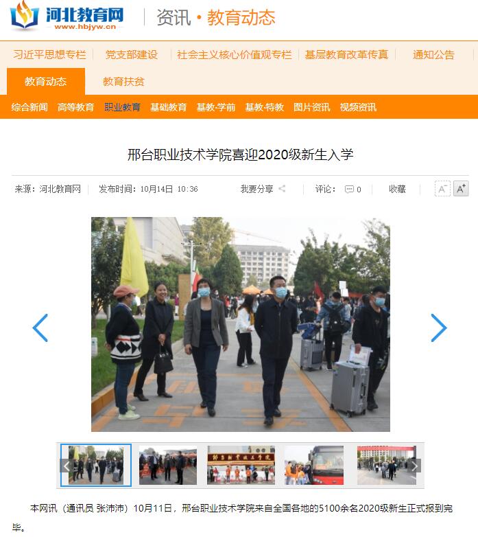 本网讯(通讯员 张沛沛)10月11日,邢台职业技术学院来自全国各地的5100余名2020级新生正式报到完毕。