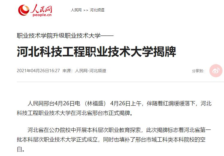 河北省在公办院校中开展本科层次职业教育探索,此次揭牌标志着河北省第一批本科层次职业技术大学正式成立,同时也填补了邢台市域工科类本科院校的空白。