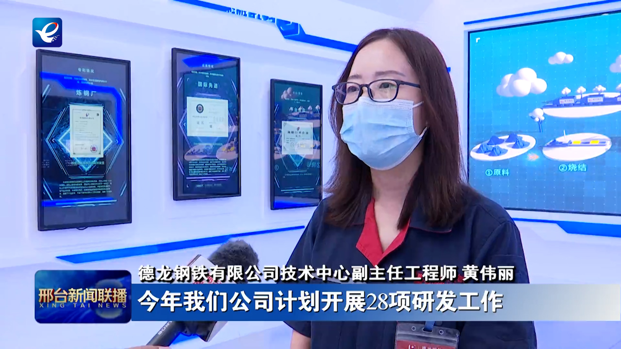 【德龙钢铁有限公司技术中心副主任工程师 黄伟丽】今年我们公司计划开展28项研发工作,这些项目覆盖了新产品开发、质量提升、节能环保等技术范畴,预计研发投入有5亿元,形成50多项科技成果,其中“烧结烟气一氧化碳减排技术”应用以后,将引领河北省烧结烟气治理进度。