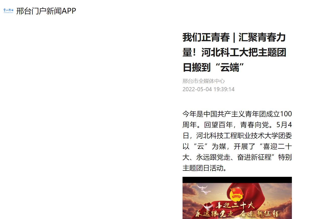 此次活动的视频第一时间传到校园网上,广大团员青年齐聚“云端”观看并留言,大家纷纷表示,要继承和发扬“五四”精神,坚定理想信念,勇担时代发展使命。(记者:刘晓燕 通讯员:曾姝)(来源 邢台市全媒体中心)