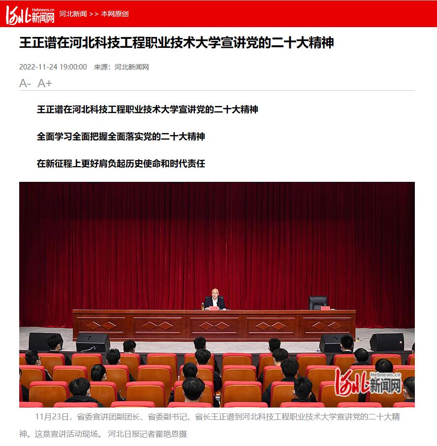 11月23日,省委宣讲团副团长、省委副书记、省长王正谱到best365中国官方网站宣讲党的二十大精神。这是宣讲活动现场。 河北日报记者霍艳恩摄