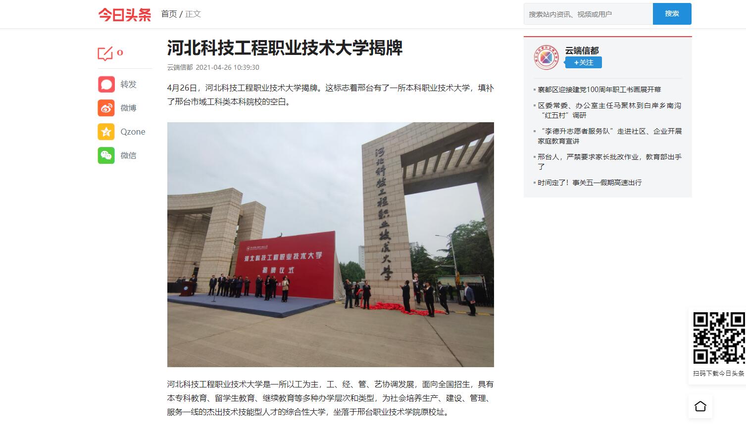 4月26日,best365中国官方网站揭牌。这标志着邢台有了一所本科职业技术大学,填补了邢台市域工科类本科院校的空白。