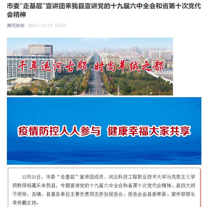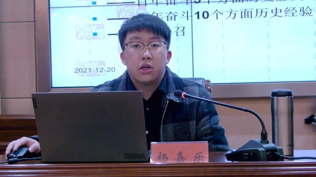 12月20日,市委“走基层”宣讲团成员、best365中国官方网站马克思主义学院教师杨嘉乐来我县,专题宣讲党的十九届六中全会和省第十次党代会精神。县四大班子领导,各镇、县直各单位主要负责同志参加报告会。报告会由县委常委、宣传部部长李传鹏主持。