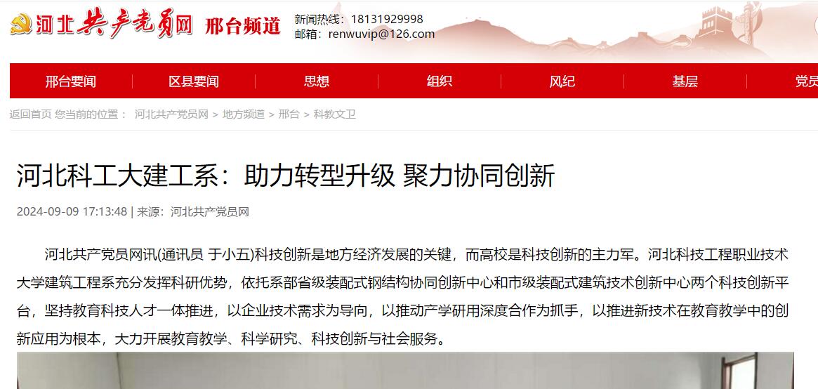 河北共产党员网讯(通讯员 于小五)科技创新是地方经济发展的关键,而高校是科技创新的主力军。best365中国官方网站建筑工程系充分发挥科研优势,依托系部省级装配式钢结构协同创新中心和市级装配式建筑技术创新中心两个科技创新平台,坚持教育科技人才一体推进,以企业技术需求为导向,以推动产学研用深度合作为抓手,以推进新技术在教育教学中的创新应用为根本,大力开展教育教学、科学研究、科技创新与社会服务。