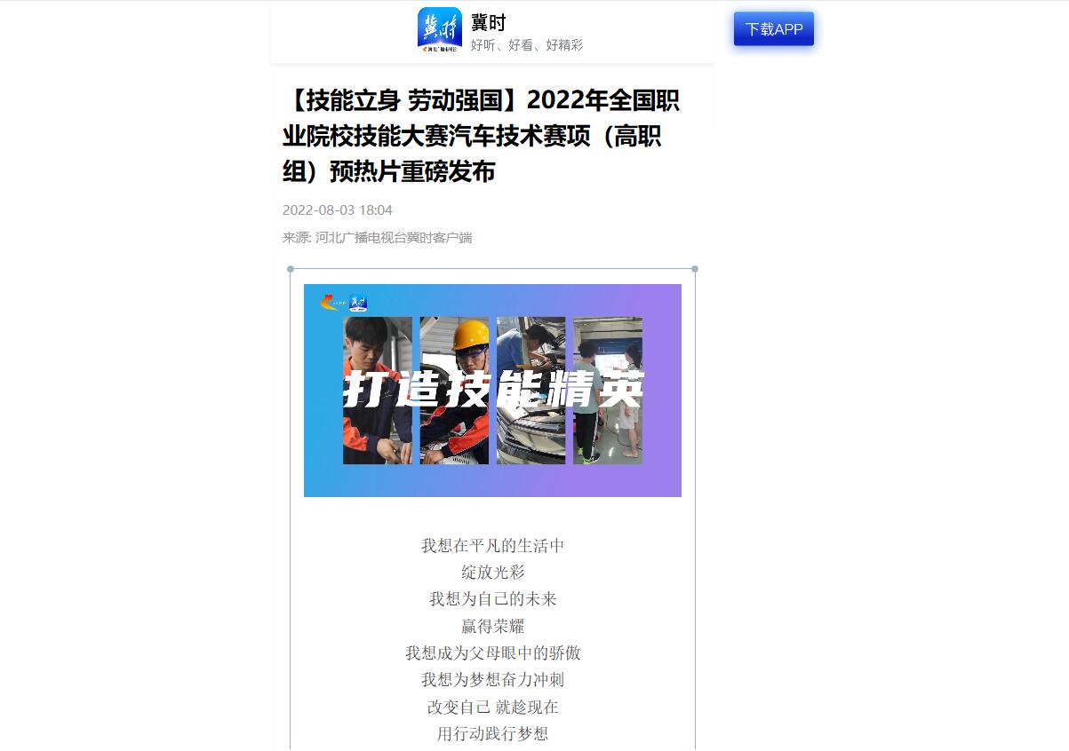 河北广播电视台冀时客户端:【技能立身 劳动强国】2022年全国职业院校技能大赛汽车技术赛项(...