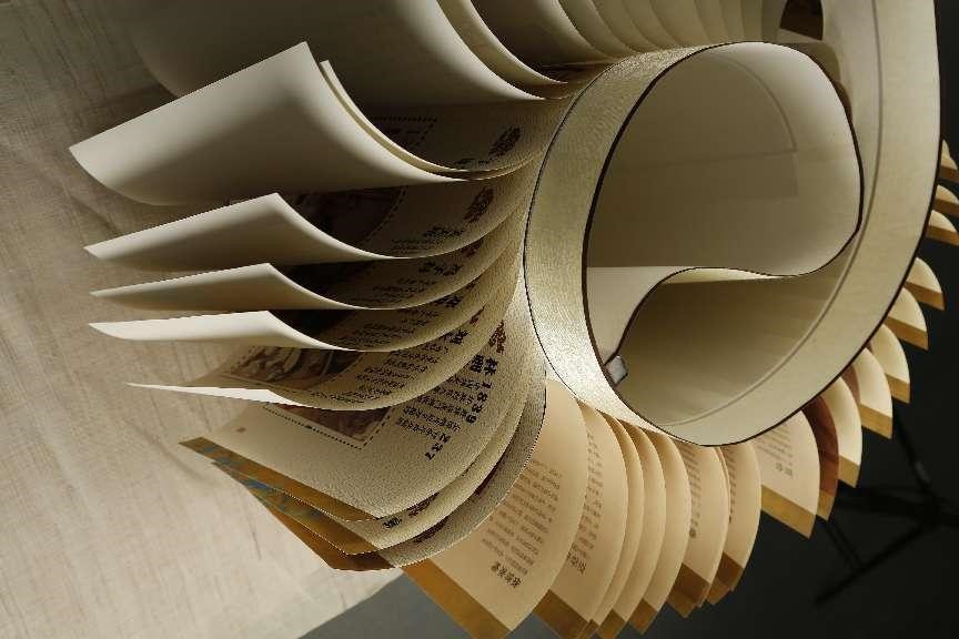 河北科工大获奖作品《书香润廉(龙鳞装)》采用中国传统书籍装订方式“龙鳞装”工艺,龙鳞装遇风则灵动翻飞、抚平是一幅画、卷起为一卷书,给读者不同的阅读体验。内容通过古圣先贤、信资印票、以物明志、承物得心四个部分,展示了中国人民以至公无私之心,行正大光明之事,克己奉公、克勤克俭的传统美德,也鼓励青年一代当肩负起国家重任,信念如炬,趋光而行。