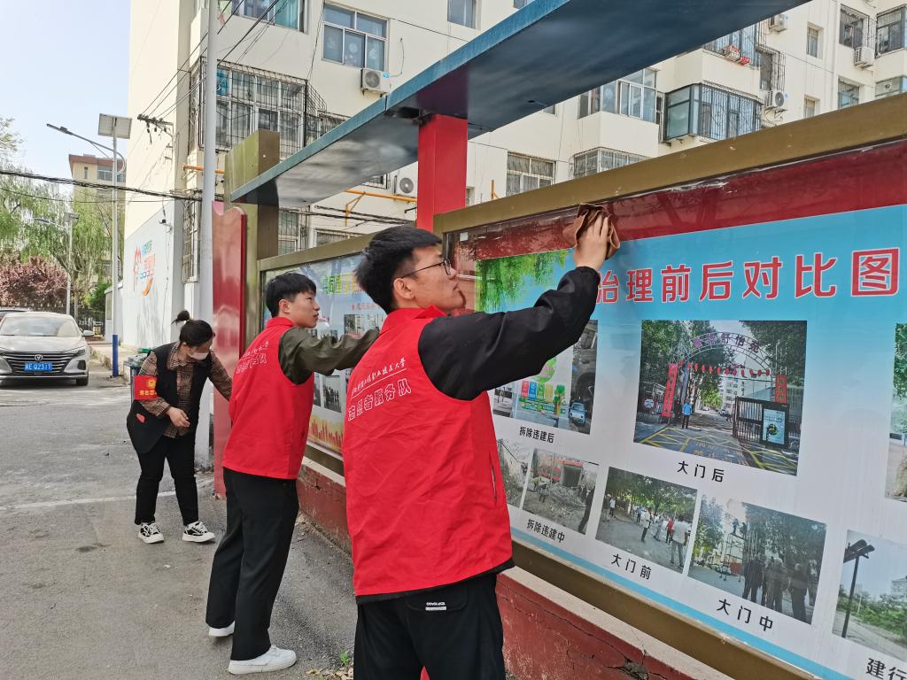 “大学生们干活挺利索。”过往居民对志愿者不断称赞,感谢他们为小区做的志愿服务。记者:郭红玉 通讯员:宋瑞雪