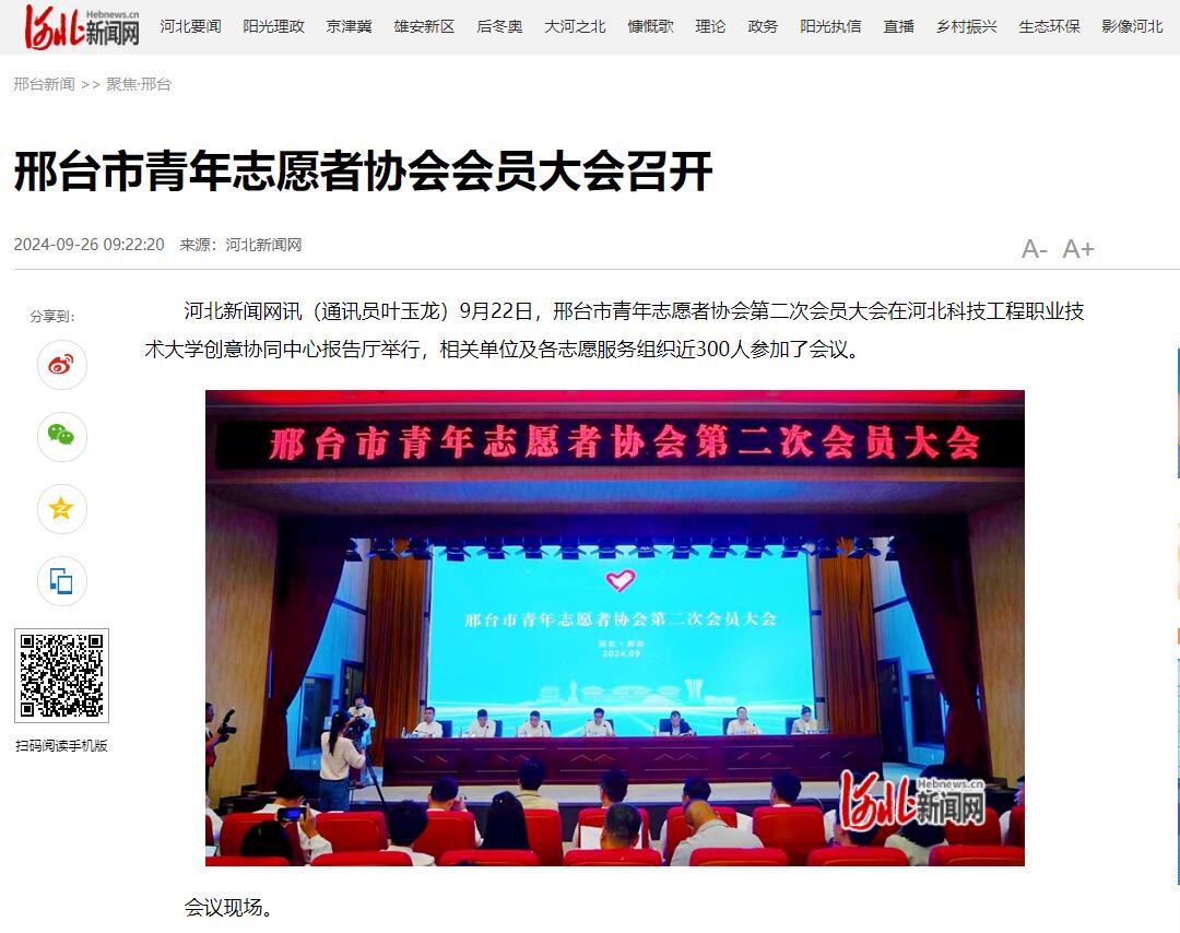 河北新闻网讯(通讯员叶玉龙)9月22日,邢台市青年志愿者协会第二次会员大会在best365中国官方网站创意协同中心报告厅举行,相关单位及各志愿服务组织近300人参加了会议。