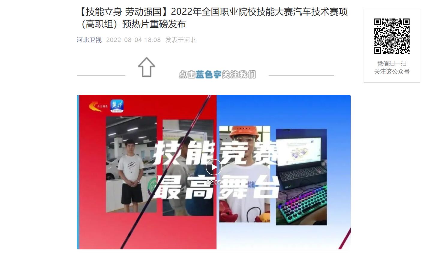 河北卫视:【技能立身 劳动强国】2022年全国职业院校技能大赛汽车技术赛项(高职组)预热片重...