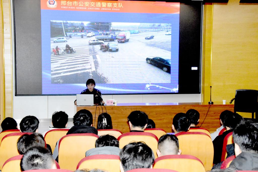 本次讲座由信都区交通二大队交通宣传员孙静主讲。她以“安全乘车、安全骑行、安全走路、安全驾车”为重点,结合近年来发生在邢台的交通事故案例,深入分析了违反交通规则、违背交通道德导致的种种危害,全面深刻讲述了道路交通法律法规、道路交通常识、交通事故中快速及时的自我防护方法和措施。