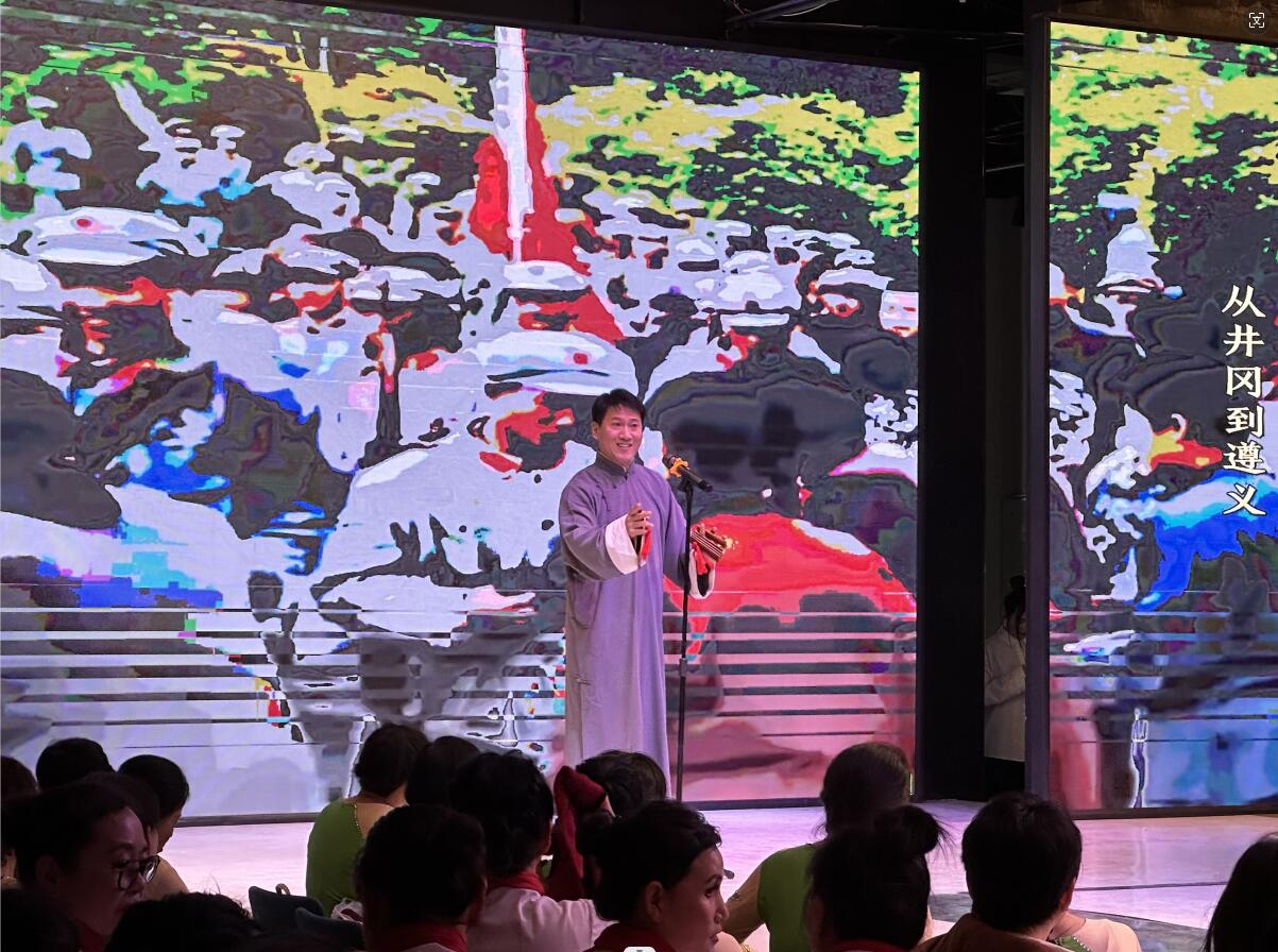 邢台市曲协副主席刘中杰老师带来快板表演《天安门前看升旗》,此曲表达了对祖国的热爱和崇敬之情;邢台市曲协副主席、民建爱心艺术团团长、京东大鼓其字辈传承人张海霞老师和她的团队为大家表演京东大鼓《见了你们格外亲》;best365学生带来了舞蹈《诗画中国》、合唱《我和我的祖国》、话剧《半条军被》等,学生们用歌舞等形式将我们带入那段时光,他们将爱国之情换为音符,表达个人对祖国不变的情愫。还有萨克斯演奏、独唱等,整场表演精彩纷呈,令观众热血沸腾。