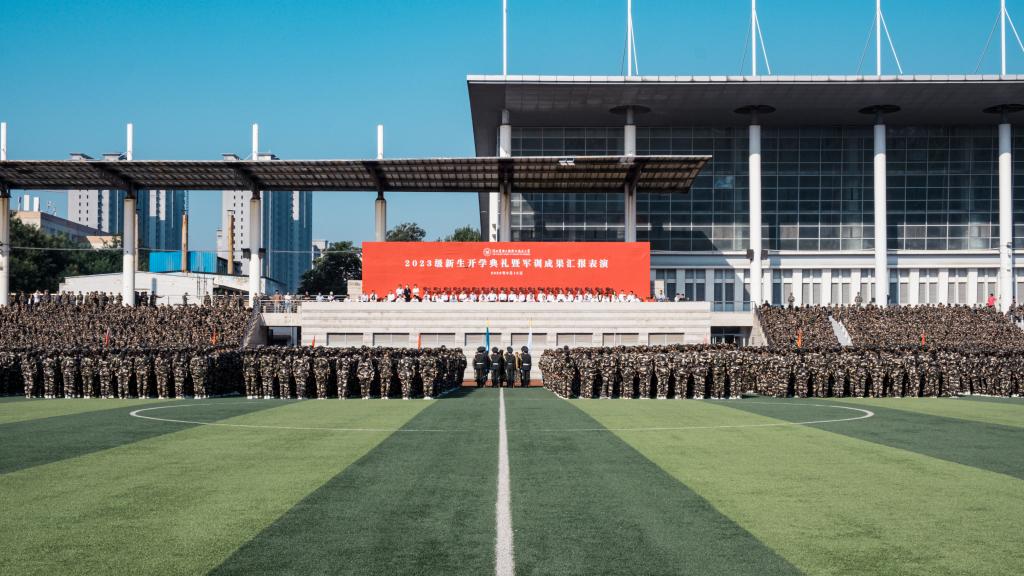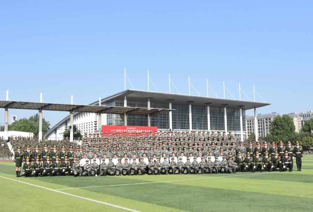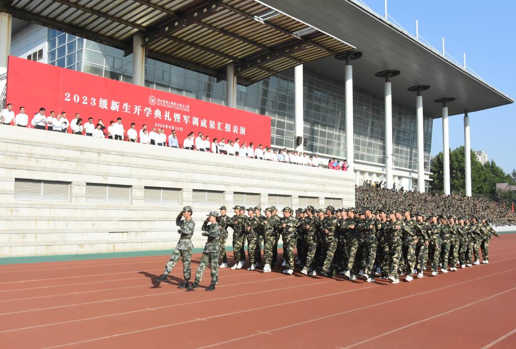 2023级新生队列整齐、精神抖擞,展现出威武的军姿军容和良好的青春风貌,为大学第一课递交了满意的答卷,2023级新生开学典礼暨军训成果汇报表演圆满完成,学校领导与全体军训教官合影留念。
