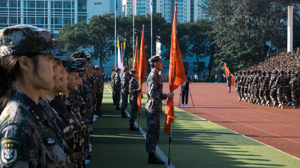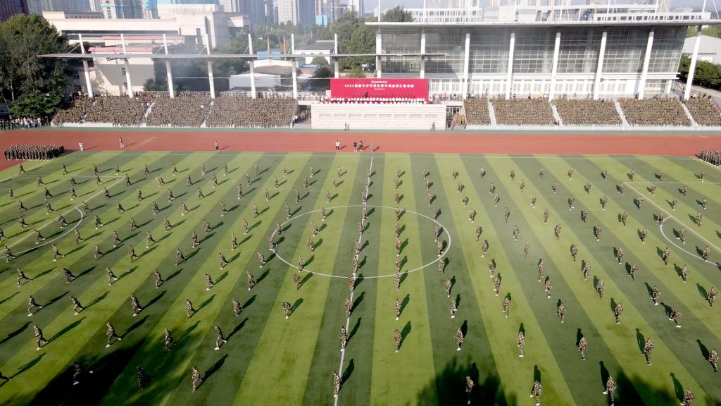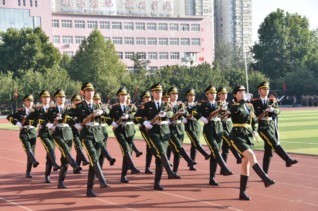 虎贲云集,沙场点兵。伴随着雄壮的军乐曲,在护旗方队的引领下,10个分列式方队依次经过主席台,接受大家的检阅。他们步履铿锵、整齐的挥臂、坚定的脚步、洪亮的口号,尽显科工大学子蓬勃向上的精神风貌。经过12天不懈努力,同学们的表演一气呵成,传承了best365优秀的军队文化基因,为大家带来了一场视觉上的盛宴。