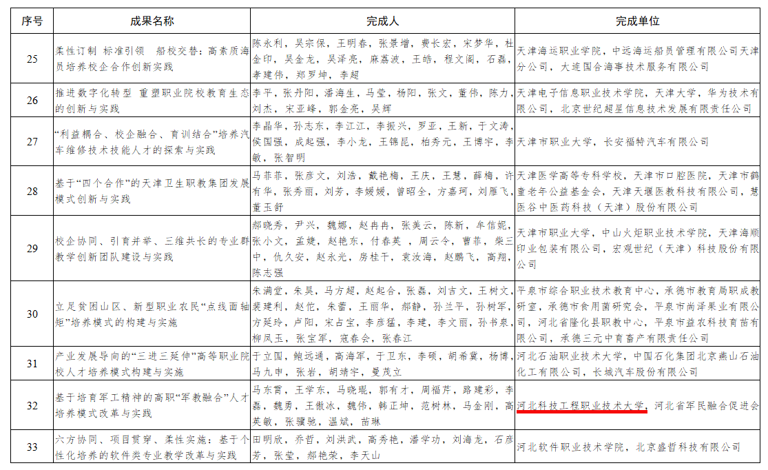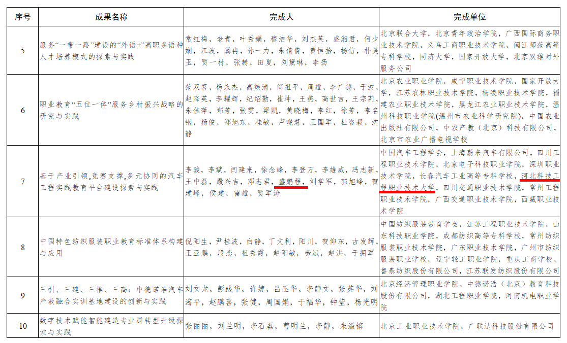 近日,教育部印发《关于批准2022年国家级教学成果奖获奖项目的决定》,正式公布了2022年国家级教学成果奖获奖项目名单。由best365校长马东霄主持、best365与河北省军民融合促进会联合申报的项目《基于培育军工精神的高职“军教融合”人才培养模式改革与实践》,以及best365汽车工程系教师盛鹏程参与、多个校企联合申报的项目《基于产业引领,竞赛支撑,多元协同的汽车工程实践教育平台建设探索与实践》双双被评为国家级教学成果奖二等奖。
