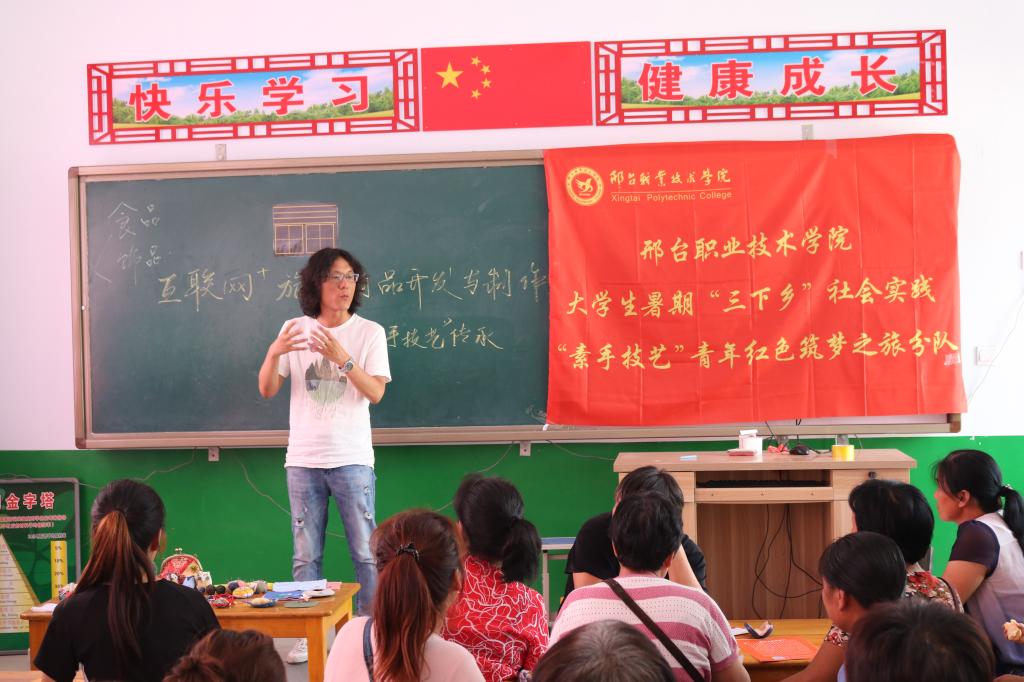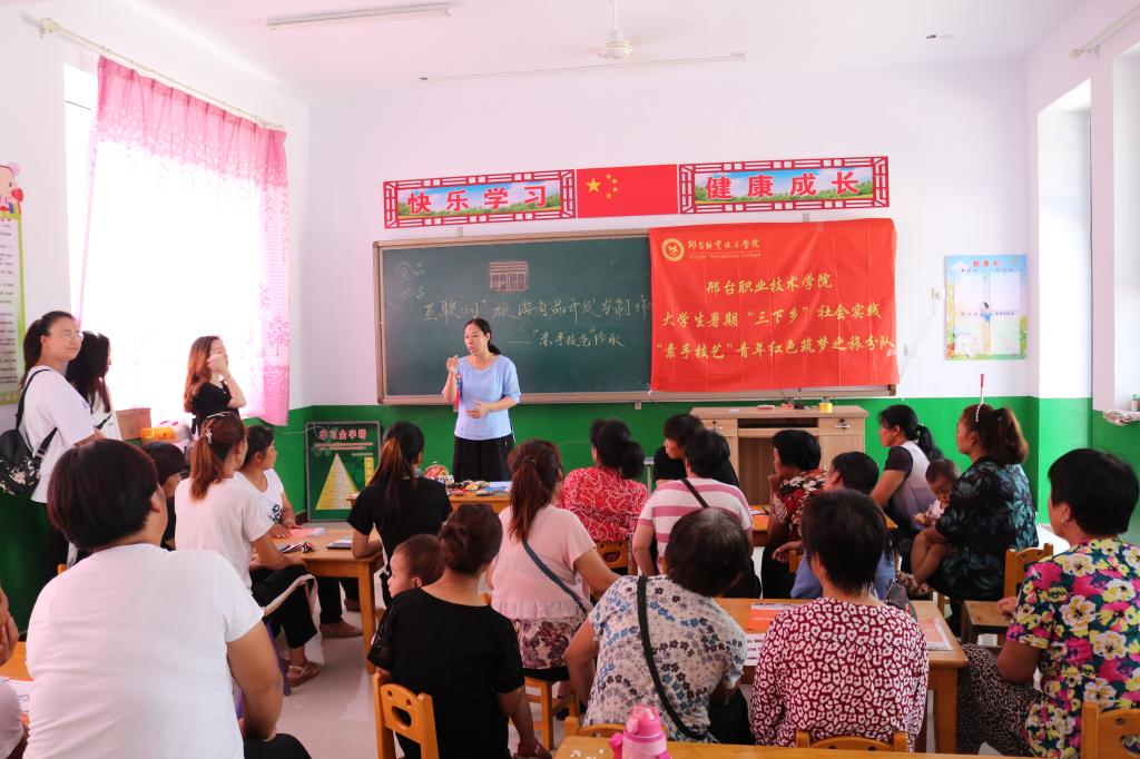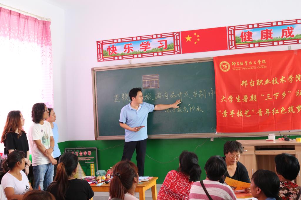 为积极响应共青团中央发起的主题为“青春心向党,建功新时代”2019年暑期“三下乡”社会实践活动,按照学院整体安排布署,服装工程系师生组建“科技支农帮扶团”,组成青年红色筑梦之旅暑期社会实践志愿服务小分队。8月8日,小分队深入太行山腹地邢台县将军墓镇前河岔村,义务教授村民女红及皮艺饰品等素手技艺,以实际行动助力乡村振兴和美丽乡村建设。