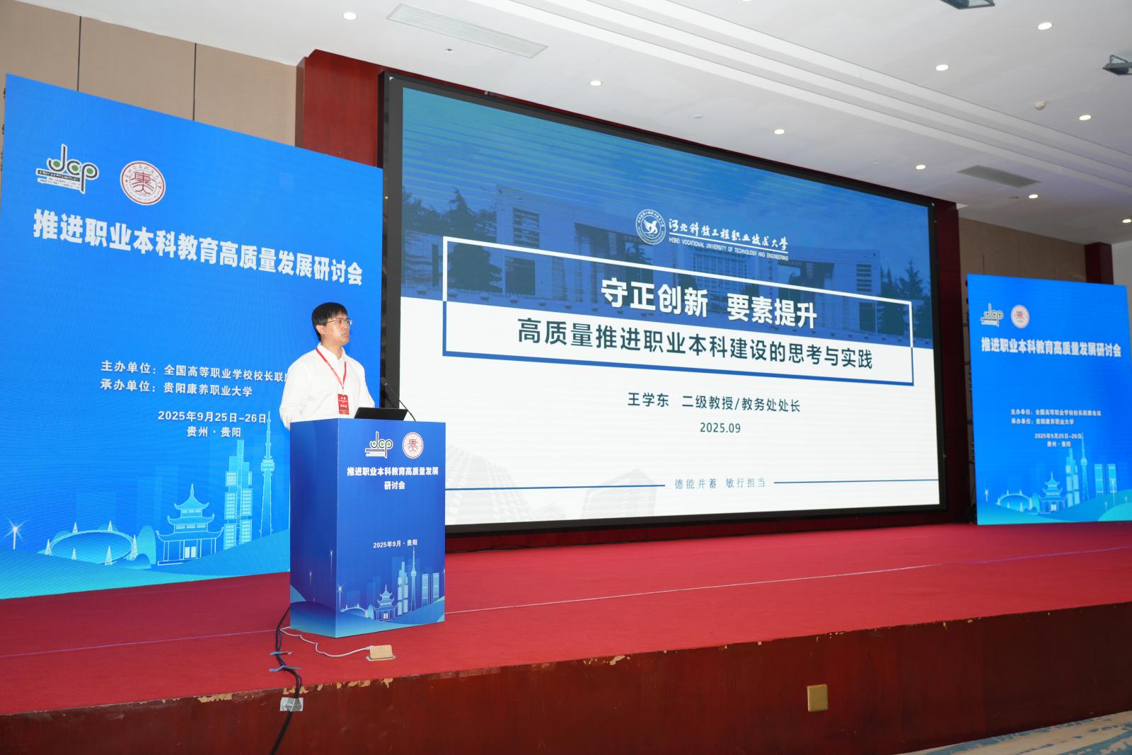 9月25日-26日,全国高等职业学校校长联席会议“推进职业本科教育高质量发展研讨会”在贵阳举办。best365教务处处长王学东教授受邀出席并作大会交流。