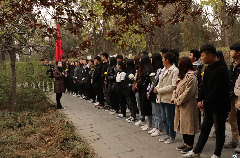 早晨6点整,50余名学生干部在学生工作处曾姝、李奕聪两位老师的带领下来到达活泉公园。曾老师首先为大家介绍了本次活动流程,随后一行人来到抗战老兵墓碑前举行追思仪式。学生代表为老兵墓献上鲜花,全体深鞠躬表达对革命先烈的深切哀悼和无尽崇敬,接着全体人员向抗战老兵和在四川凉山森林大火中牺牲的30名英雄集体默哀。最后,学生代表致辞宣誓:“不负伟大新时代,奋发学习,为祖国的繁荣富强贡献自己的青春力量,缅怀革命先辈”。仪式结束后,服装工程系刘凤婷同学说“今天的祭扫活动也是为了沉痛悼念在四川森林火灾中牺牲的30名英雄,我们深知宁静安稳的今天,是他们用生命点的明天”,机电工程系李鑫表示“不忘初心,牢记使命,就是对英烈最好的告慰和怀念”。
