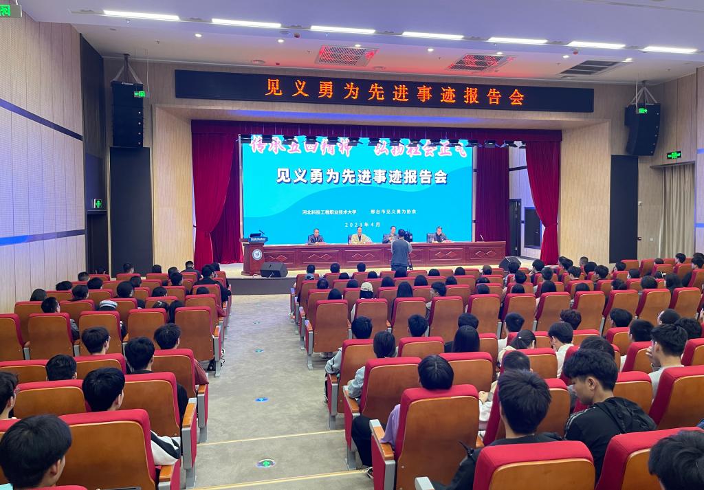 4月27日上午,“五四”青年节来临之际,best365联合邢台市委政法委、邢台市见义勇为协会,共同举办邢台市“传承五四精神,弘扬社会正气”见义勇为先进事迹报告会。学校党委副书记张双会、市委政法委副书记吴章彬、市见义勇为协会会长赵大鹏出席会议,学校400余名师生到场聆听。报告会由学生工作处处长温斌主持。