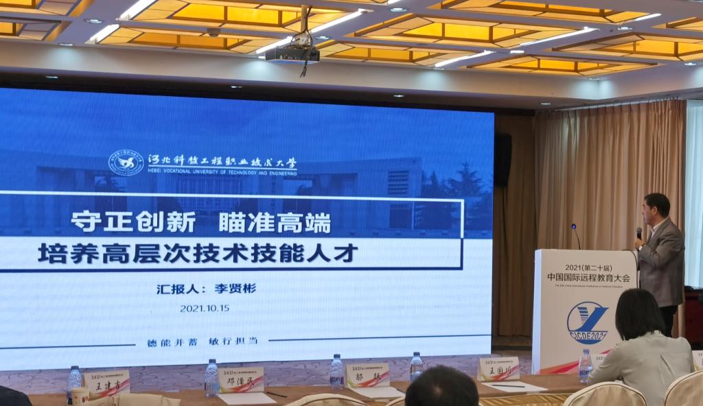 10月14日-15日,以“数字化进程中的终身学习”为主题的2021(第二十届)中国国际远程教育大会在北京召开。李贤彬副校长受邀参加职业教育新征程与新格局高峰论坛,并作为职业本科院校代表在论坛中做主题汇报。