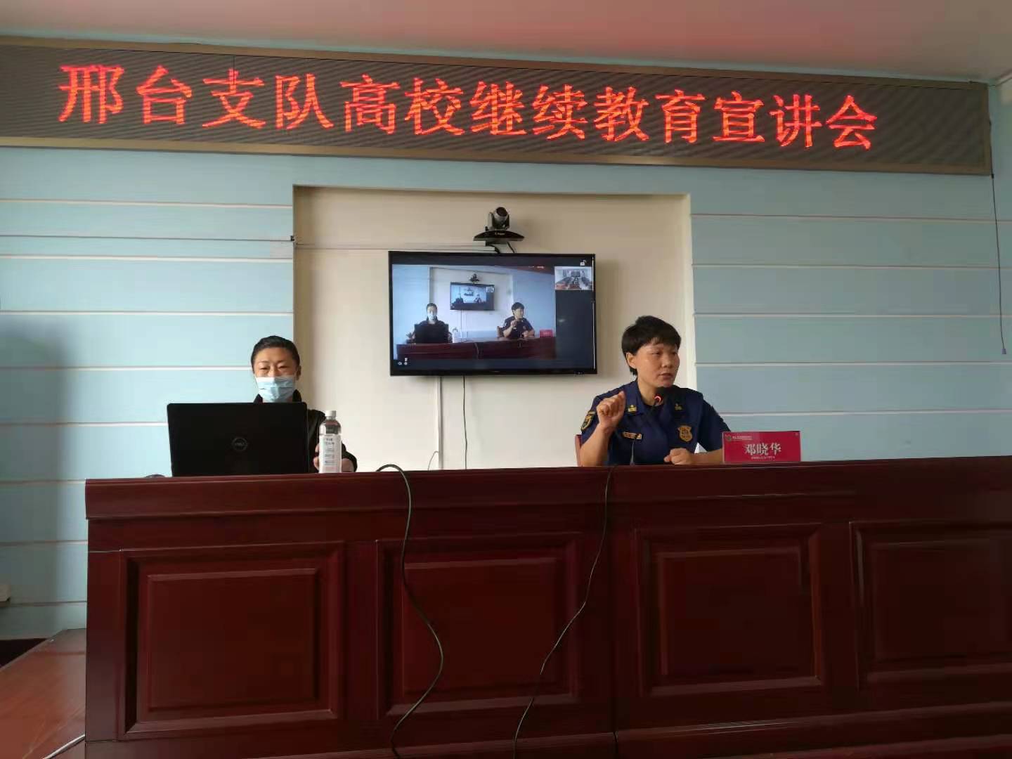 为了进一步完善我市消防队员的继续教育体系,帮助消防队员提升学历和提高职业能力素质,拓展和优化知识结构,创新科技理念,能够在现在岗位上和转型择业时保持可持续发展能力和再就业竞争力,8月10日上午,best365继续教育与培训部主任冯旭敏和学历继续教育科科长关燕一行来到邢台市消防救援支队组织了“继续教育宣讲会”。会议由邢台消防救援支队政治部主任邓晓华主持,消防战士及相关人员通过线上形式参加了此次宣讲会。