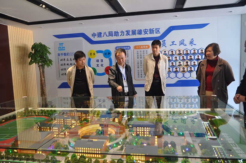会前,与会人员参观了中建八局总承包的雄县第三高级中学新校区项目部的中心校园模拟展示中心和VR仿真模拟体验区。专业人员讲解了中建八局“科技引领、智慧建造”的企业文化理念,并结合仿真模拟设备系统阐释了高科技在安防、节水、节电、数据综合分析和提质增效方面的具体应用。参观人员纷纷表示自己的传统建筑思维受到颠覆性冲击,此次参观学习受益匪浅。