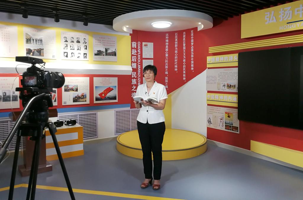 刘彩琴书记和两名学生分别在我院思政学堂和大学生网络文化体验中心接力诵读著作中《推动形成优势互补高质量发展的区域经济布局(2019年8月26日)》一文中的第一部分内容:正确认识当前区域经济发展新形势。一字一句,大声诵读,抑扬顿挫,让著作内容更加入脑入心。