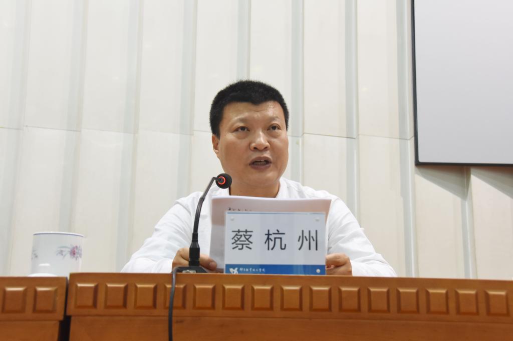 蔡杭州在讲话中介绍了省委巡回指导组的职责任务,充分肯定了我院主题教育预热升温工作取得的成效,并就开展主题教育提出四点要求:一要提高政治站位,把握整体要求。要围绕“四个到位”抓落实,紧扣“五句话”目标抓落实,特别是结合本单位实际明确专项整治重点,加大整治力度,在解决突出问题上求实效,不断增强师生的获得感、幸福感、安全感。二要坚持问题导向,边学边查边改。切实把存在的问题查找准、剖析透、检视到位,为整改提供精准靶向。三要落实重点举措,创新方式方法。把学习教育、调查研究、检视问题、整改落实贯穿始终。四要注重结合融合,力戒形式主义,反对形式主义、官僚主义。