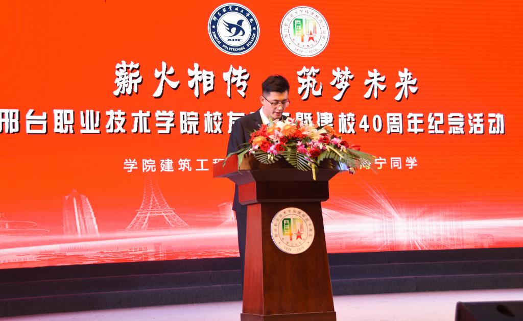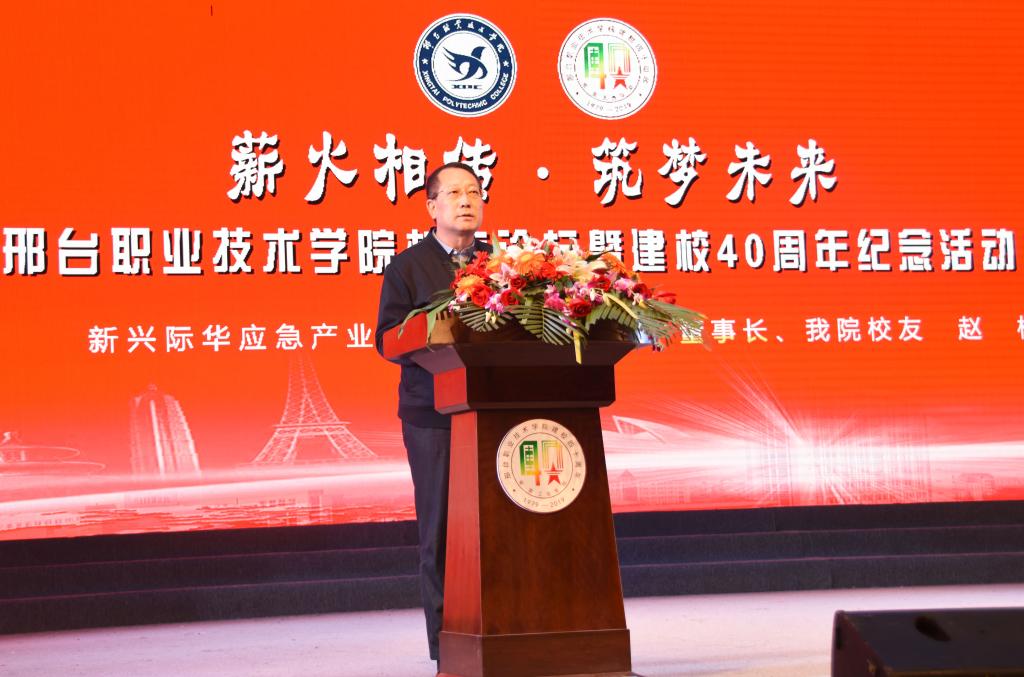 学院81级校友、新兴际华应急产业有限公司党委书记、董事长赵柱代表全体校友向学院40周年表示衷心祝贺,感谢学院多年来的悉心教育和培养。他祝愿母校未来更加美好,为社会经济发展培养出更多高素质人才。