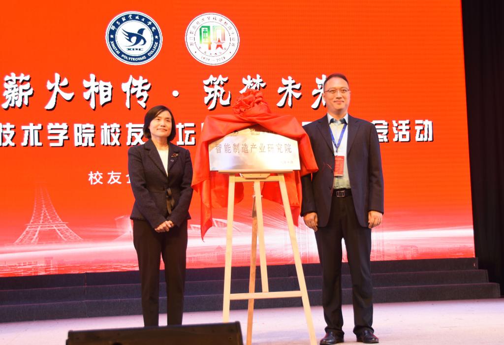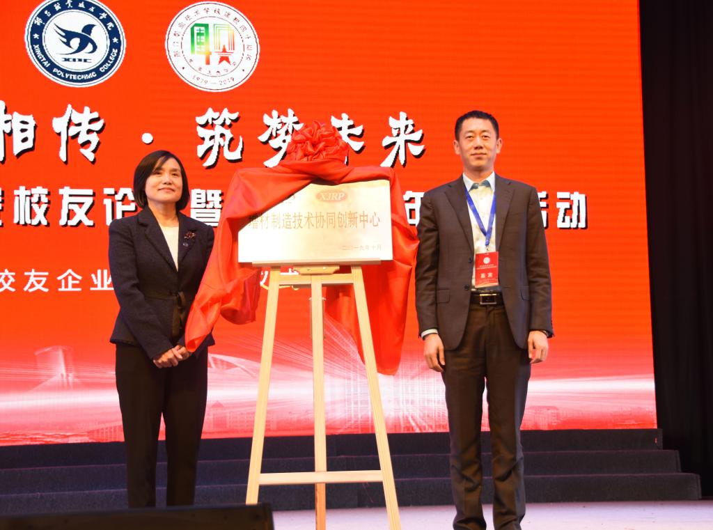 随后,学院00级校友、广东正业科技股份有限公司董事、深圳市正业玖坤信息技术有限公司执行董事、总裁庞克学向学院捐赠现金40万元用于奖励资助优秀学生。学院副院长刘卫红接受捐赠。学院00级校友、西安增材制造国家研究院有限公司市场推广部部长杨锋与副院长刘卫红共同为“增材制造技术协同创新中心”揭牌;校友庞克学与副院长刘卫红共同为“智能制造产业技术研究院”揭牌。