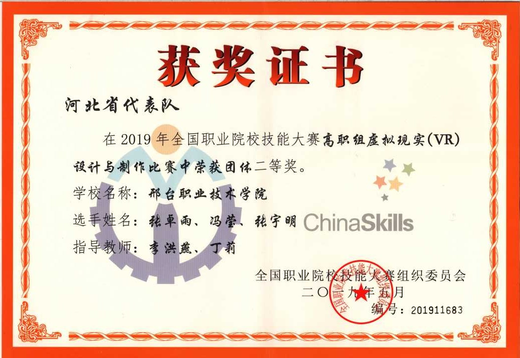 在信息工程系李洪燕和丁莉老师的指导和带领下,冯莹、张卓雨和张宇明3名学生组成的代表队,在本次大赛中获得国赛团体二等奖。河北省本次比赛共派出三个队伍参赛,我院代表队成为本赛项河北省唯一获奖队。