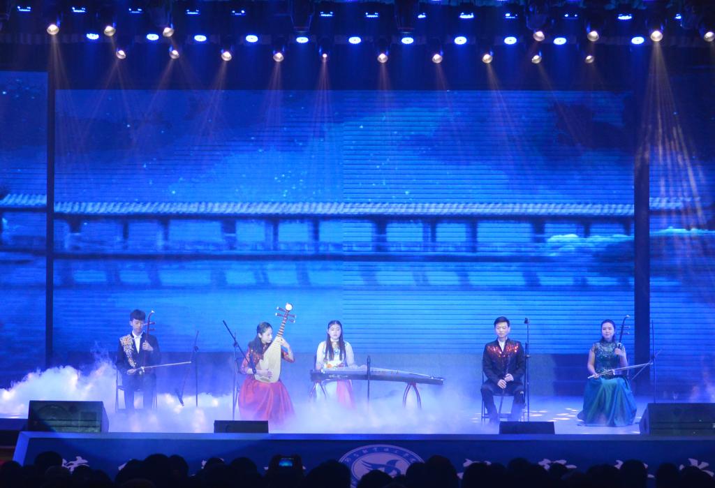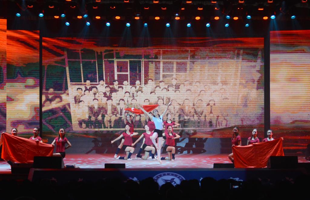 传承学院优良的军队作风,现役军人校友代表合唱《当那一天来临》;情景舞蹈《青春万岁》展示了青年学子的朝气活力;民乐合奏《春江花月夜》、歌曲《我的太阳》给大家带来美好的视听享受。