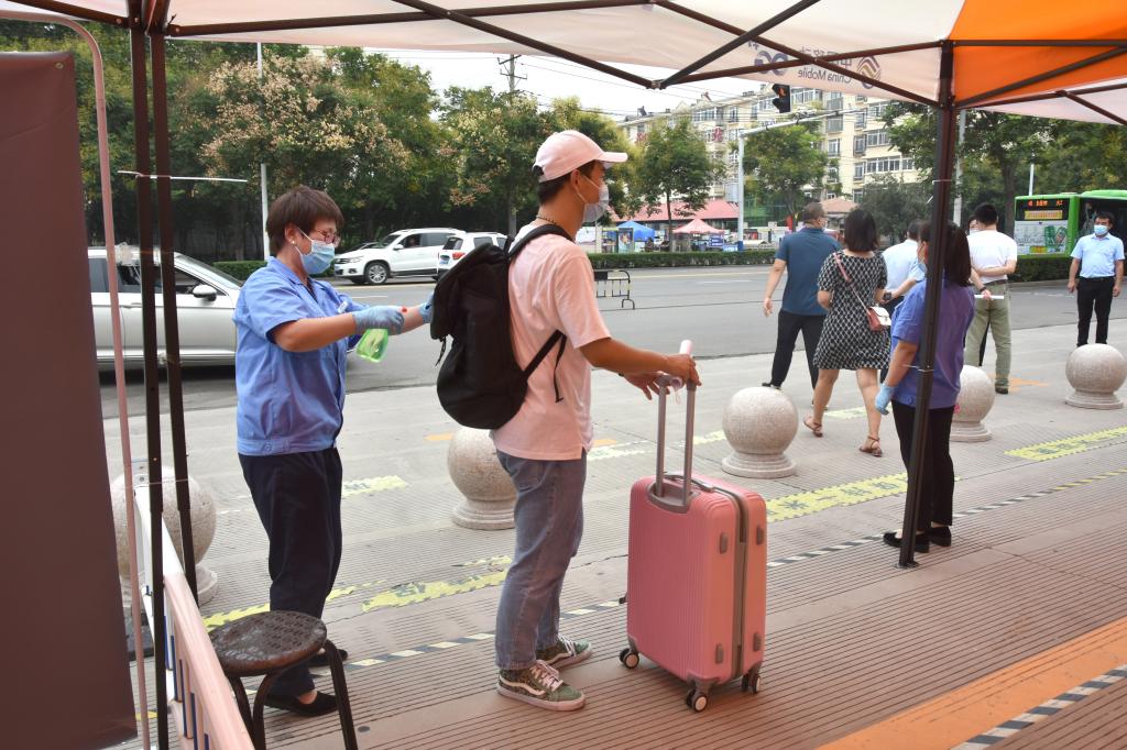 演练开始前,张双会副书记、赵建光书记分别讲话,明确演练的目的、要求,介绍了疫情防控应急处置的流程。本次演练主要模拟疫情防控常态化下学生正确的返校流程,以及遇到发热学生等突发情况后的应急处置。学生返校要遵循行李消杀、测量体温、更换口罩、核验身份/查验健康码、系部报到等五个主要步骤。如遇体温异常、健康码红码等突发情况,会有专人将学生带至应急处置区。突发情况发生后,从第一时间逐级报告、到第一时间前往学校临时隔离点、再到转送校外定点医专附属二院的全部流程,学校各个分管部门都做到了应急处置各环节的科学性、严密性和实效性。