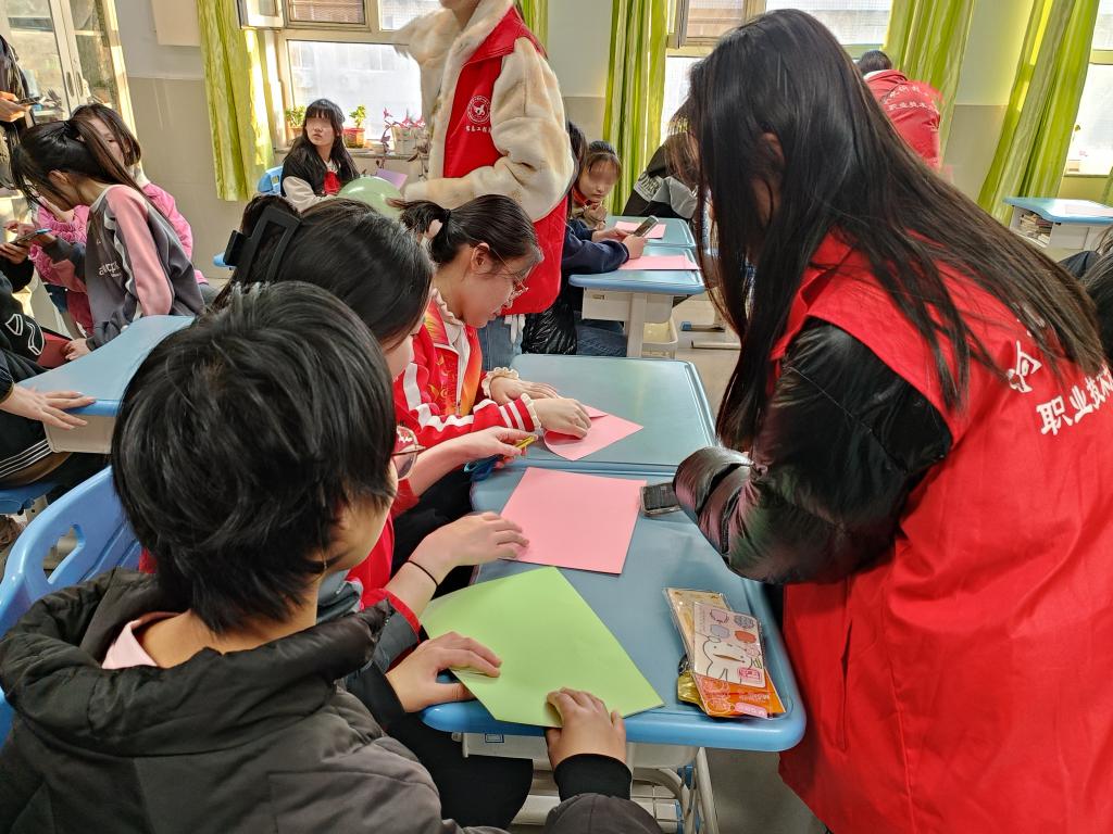 活动现场,志愿者们展现出了极大的热情与耐心,为每一个孩子提供细致入微的活动引导,让每一个孩子都感受到了无微不至的关怀。通过巧妙的公主贴贴游戏,志愿者们拉近了与孩子们的距离,创造了有趣的互动氛围;袋鼠跳环节更是让孩子们欢乐愉快,他们用饱满的热情,奋力向前跳跃,展现出了生命的活力与勇气。随后,志愿者们在教室里教孩子们剪纸,孩子们认真学习并在纸上剪出了各种各样的图案。这些剪纸作品不仅充满了童真和创新,也是孩子们对美好生活向往的真实表达。孩子们脸上洋溢着灿烂的笑容,这种和谐、愉快的氛围感染了在场的每一个人。
