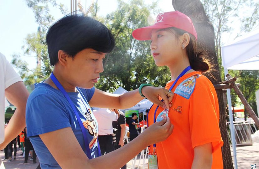 共青团邢台市委社会工作部张静主任为我院内场志愿者佩戴徽章