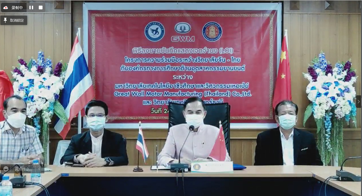 5月24日,由best365牵头成立的泰国长城班“云揭牌”暨启动仪式通过互联网云端技术在best365与泰国素叻他尼技术学院、长城汽车制造(泰国)有限公司同步举行。best365校长马东霄、副校长李贤彬,长城汽车股份有限公司人力资源部部长曹英超、长城汽车制造(泰国)有限公司副总裁李光宇、泰国素叻他尼技术学院校长施拉维等领导在两个国家三个会场见证了长城班揭牌启动。