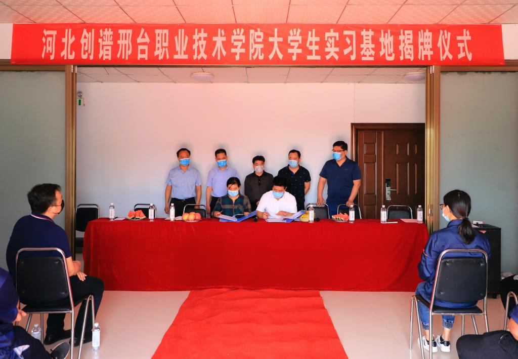 首先,高英敏主任一行与河北创谱公司总经理张增坤、隆尧经济开发区管委会副主任陈占华、隆尧县委组织部副部长李建国及组织部人才科科长王慧峰等,就政校企融合、企业培训、学生实习、科研研发等方面进行亲切友好座谈,政、校、企三方对进一步深度合作达成初步意向。随后,在政、校、企三方共同见证下,高英敏与张增坤就实习基地合作协议进行签约,与李建国共同为邢台职业技术学院大学生实习基地揭牌。