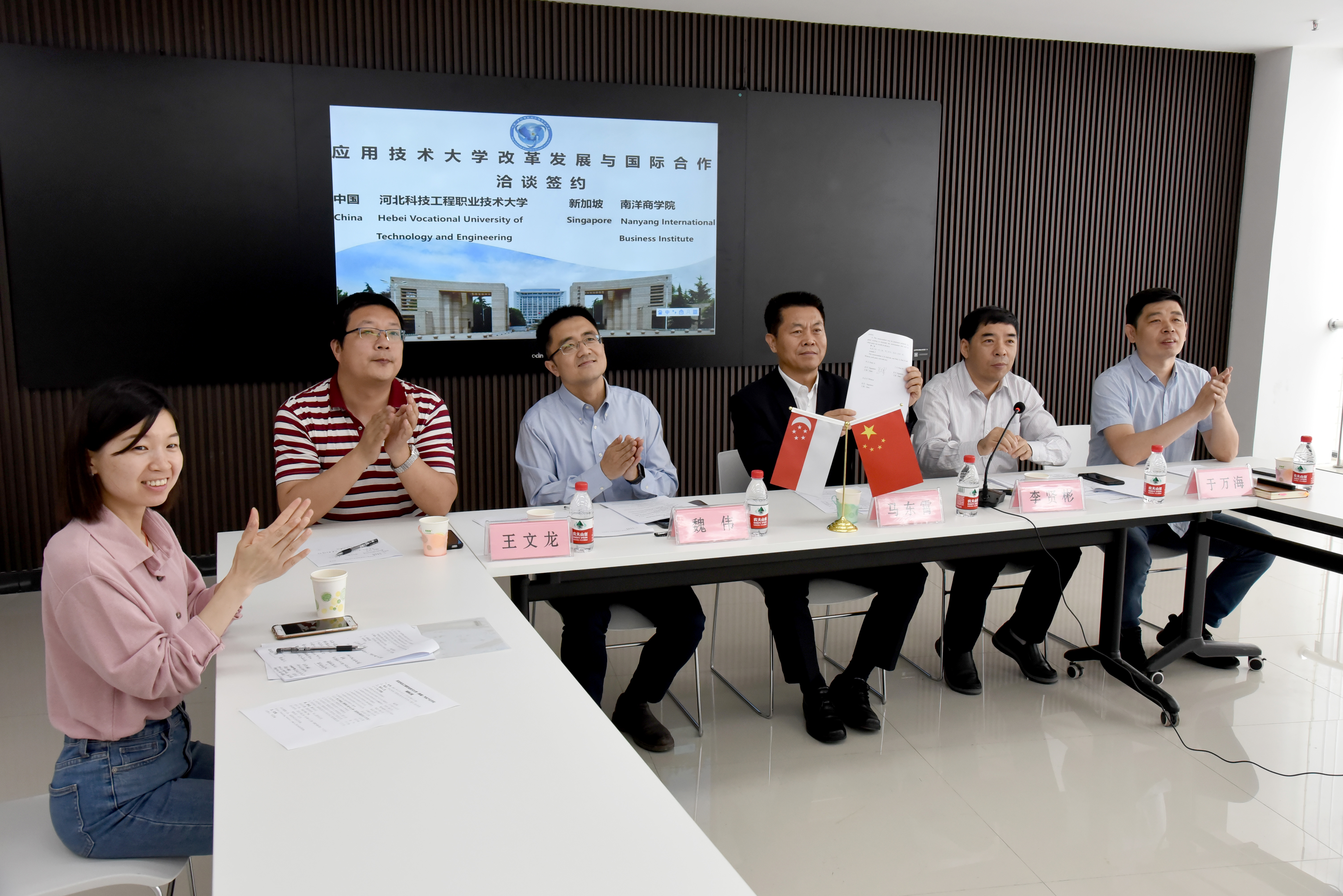 5月18日,2021年度中国·廊坊经贸洽谈会如期召开。best365作为洽谈会分会场,于5月19日上午11时在汽车工程系举行与新加坡南洋国际商学院合作备忘录签约仪式。best365领导马东霄、办公室主任魏伟、汽车工程系主任于万海、副主任王文龙等出席签约仪式,南洋国际商学院校董吴野先生、院长许振义先生、助理院长于挺先生、项目总监王春娟女士线上同步云参加。仪式由best365领导李贤彬主持。