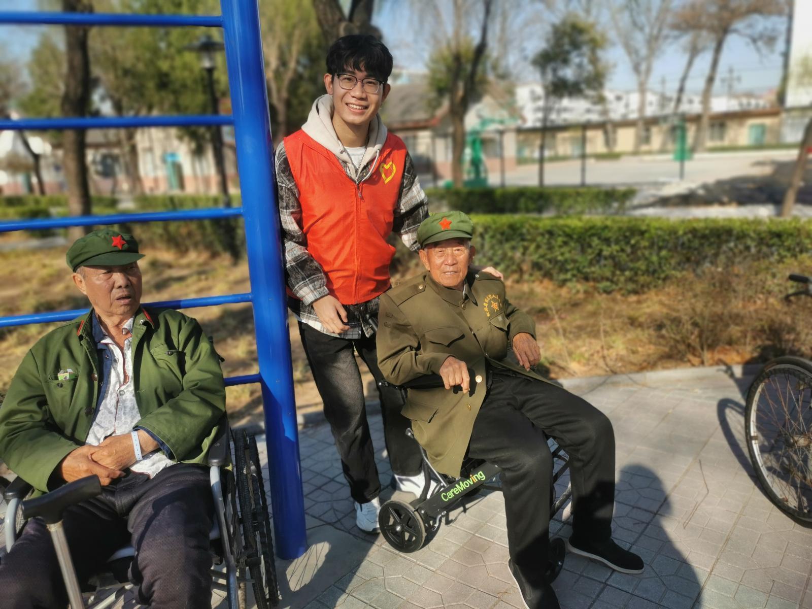 在河北省第一荣军优抚医院小广场,慰问老兵的志愿者们精心编排了各种节目,动感的舞蹈、悦耳的歌曲、幽默的小品等依次上演,志愿者们还与老兵做起了游戏,现场氛围温馨而热烈,掌声、笑声不断。活动后,该医院社工科负责人特意将写有“情暖老兵心,逐梦绽芳华”的锦旗赠送给志愿者们。“这面锦旗不仅是对我们志愿服务的肯定,更是一种激励,我们会继续传承雷锋精神,将志愿服务做深做实。”陈晓轩同学说道。
