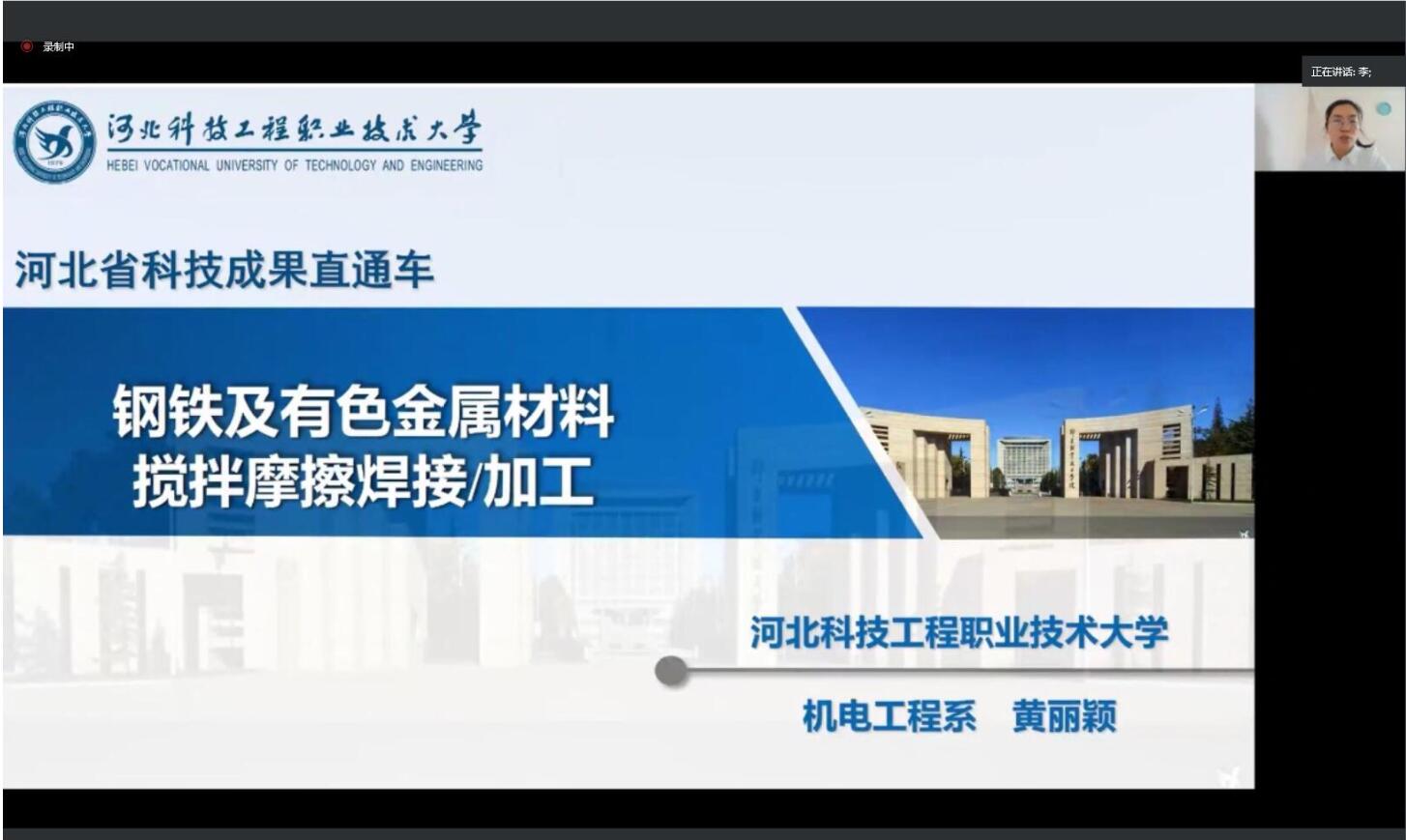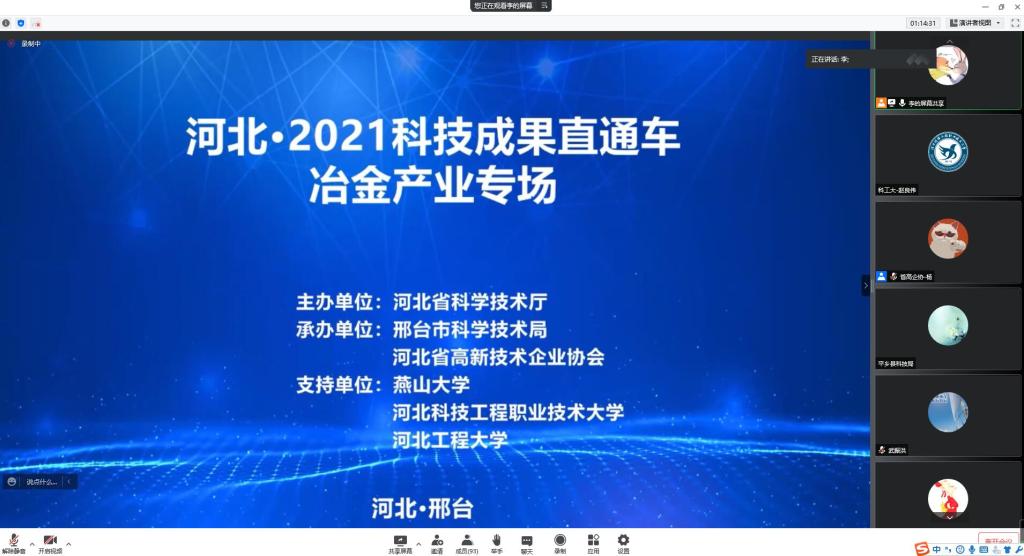 4月21日上午,河北科技成果直通车(冶金产业专场)活动在线上成功举办。活动共有80多个企业单位参加,best365教师齐增生、黄丽颖应邀在会上推介科技成果。
