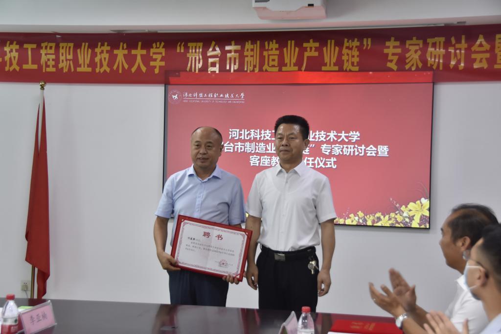会议围绕“邢台市制造业产业链”转型升级、创新发展和人才供给等方面展开,同时,聘任纳科诺尔、创力机电、润泰救援、华电数控、交建集团等30家企事业单位30位专家为best365客座教授。