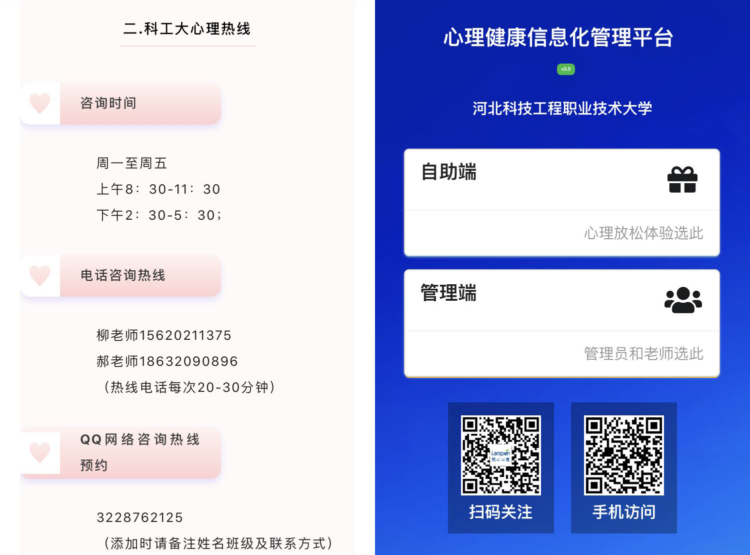 开学伊始,学校开通了心理热线。大学生心理健康中心有专业的老师全天候为全校师生提供全面的心理咨询和疏导服务。截至目前累计接待约三百人次。老师耐心倾听,帮大家答疑解惑,让大家更好地调整身心状态面对学习和生活。